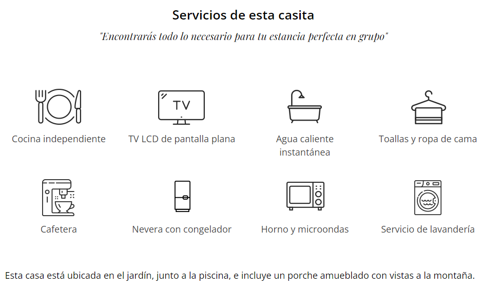 Esta casita es ideal para amigos y familias hasta cinco personas. Está decorada con tonos dorados y azules, con toques florales y llamativos. Totalmente equipada y preparada para que te sientas como en tu propia casa y puedas hacer todo lo que quieras en ella.