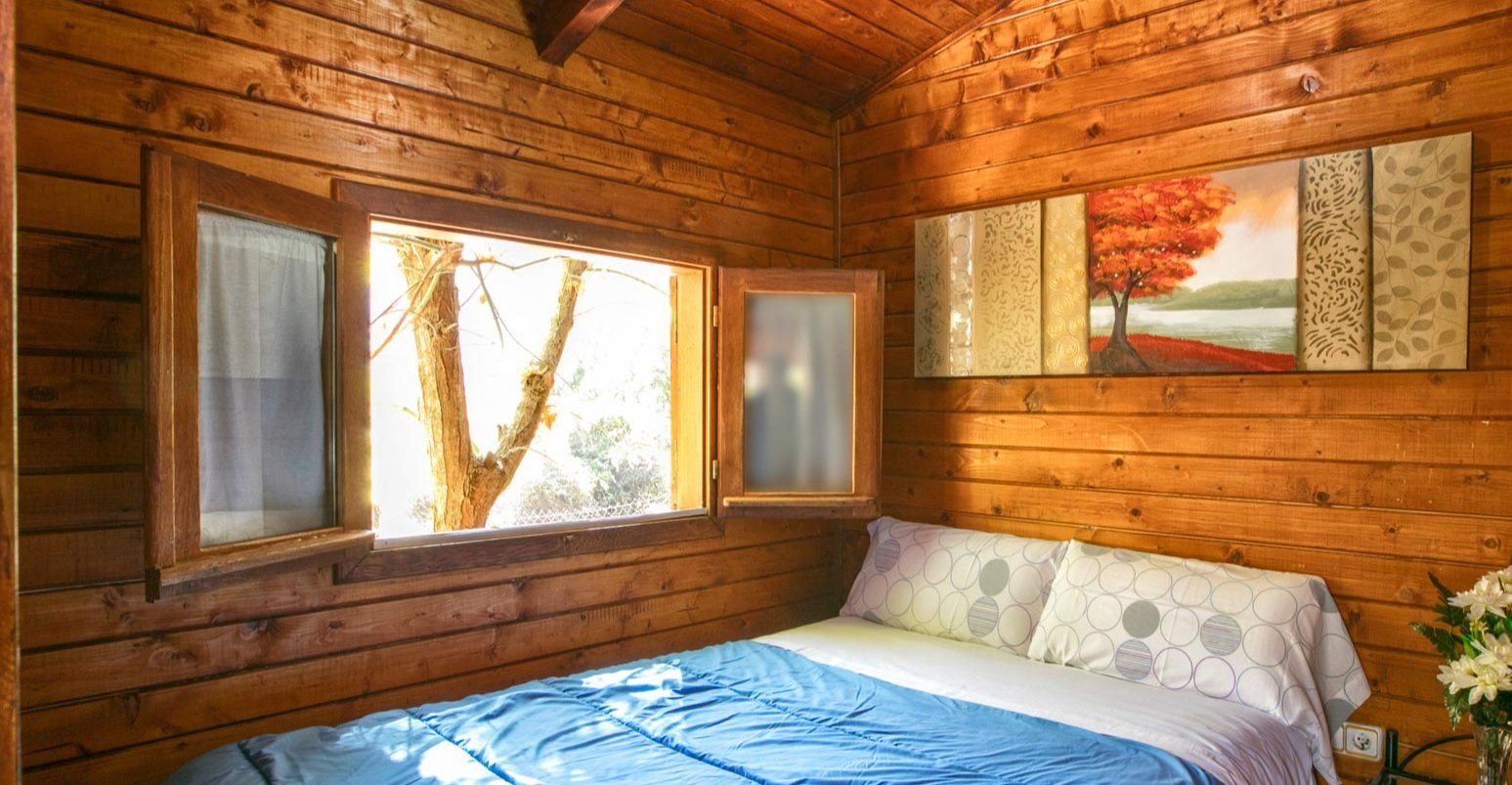Cabaña de madera para 5 personas. 1 dormitorio doble y una buhardilla triple. 1 baño, salón con tv y cocina equipada con todo lo necesario.