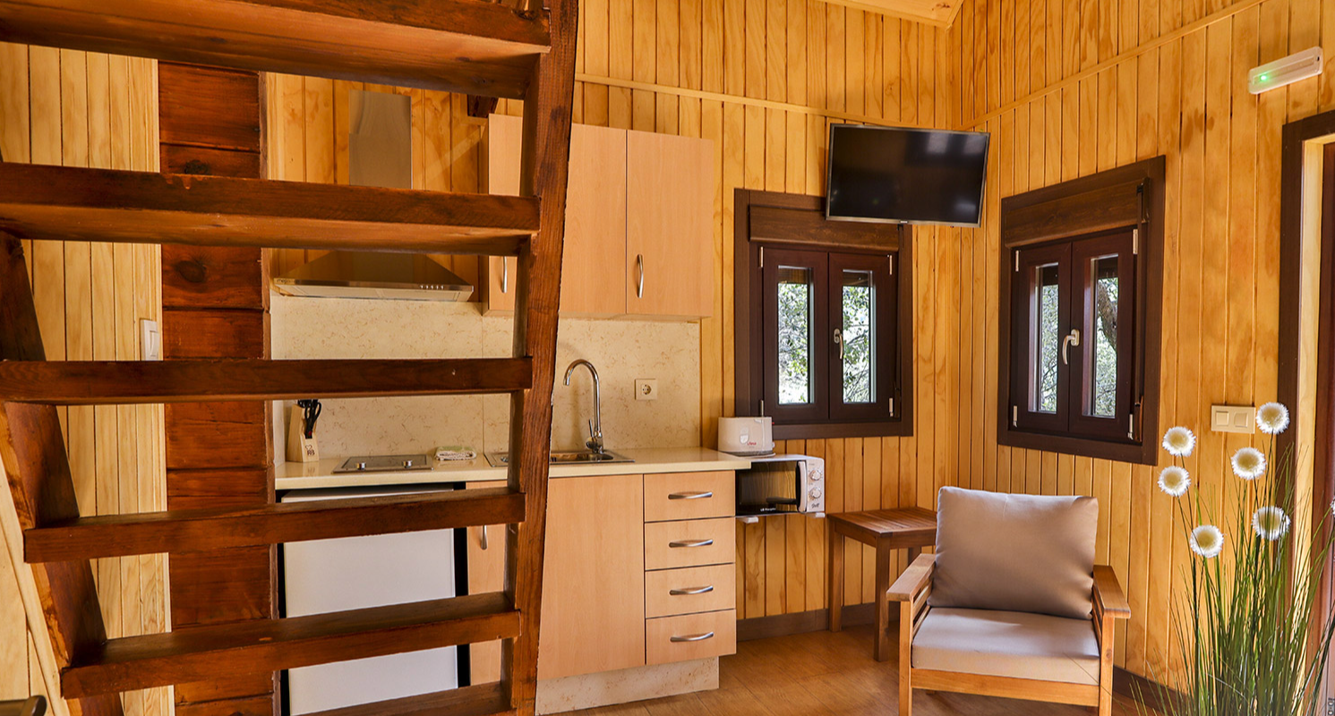Fabricadas con Pino Negral, nuestras cabañas de madera en Cazorla, están trabajadas artesanalmente, con capacidad desde 2 hasta 5 personas, totalmente equipadas, calefacción, aire acondicionado, menaje en cocina, ropa de cama y toallas.
