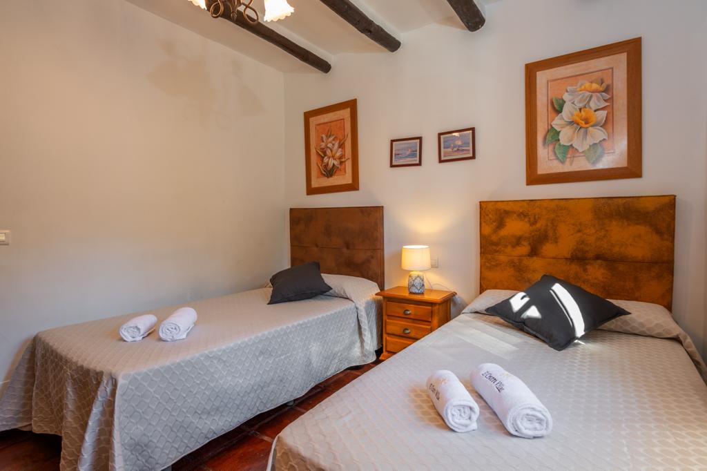 Esta casa dispone de dos amplios dormitorios; el dormitorio principal con una cama doble ( 1.35 m ) y el otro con dos camas individuales de 1.05 m, salón comedor con chimenea, aire acondicionado, cocina totalmente equipada y un baño completo