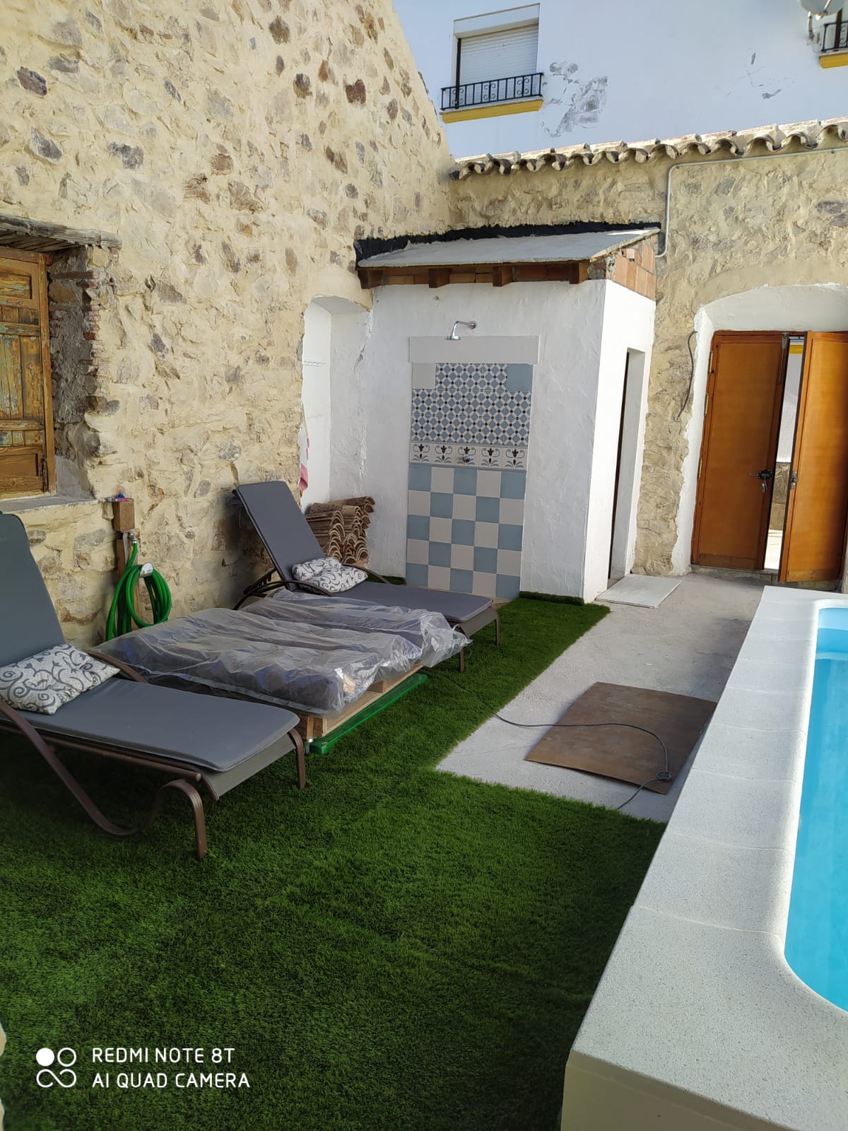 La casa anexa se compone de porche con velador, salón con chimenea y sofá cama, dormitorio principal con paredes en piedra natural, cuarto de baño completo, cocina equipada, habitación superior con dos camas individuales, a/a, un pequeño lavadero y zona de solarium.10:46