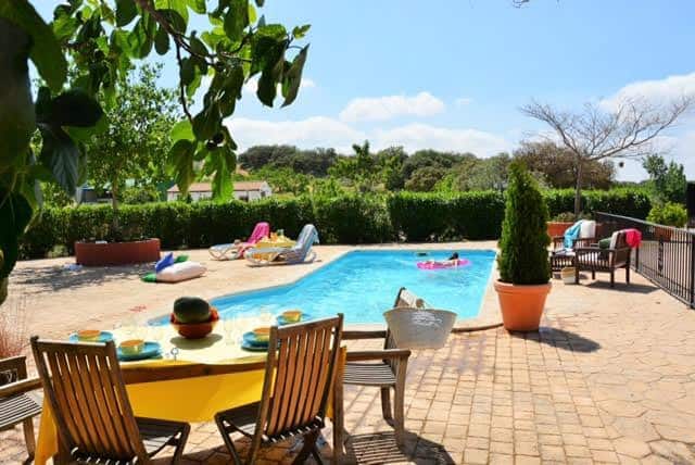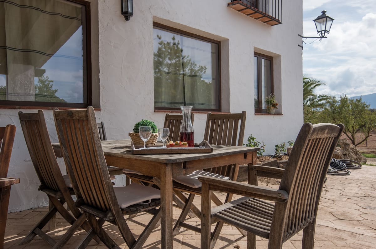 - En el exterior hay un gran porche con vistas al campo y una piscina vallada rodeada de hamacas. Dispone de zona de barbacoa y dispone de una paellera portátil.