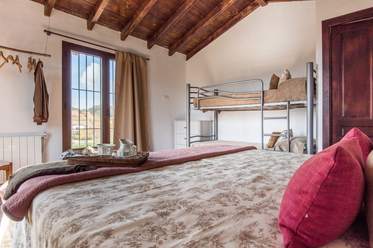 En la planta superior, cinco habitaciones con impresionantes vistas al campo, prado contiguo y a los caballos, tres cuartos de baño uno de ellos en suite con grandes duchas y una sala de estar con litera, camas y televisión para los más pequeños.