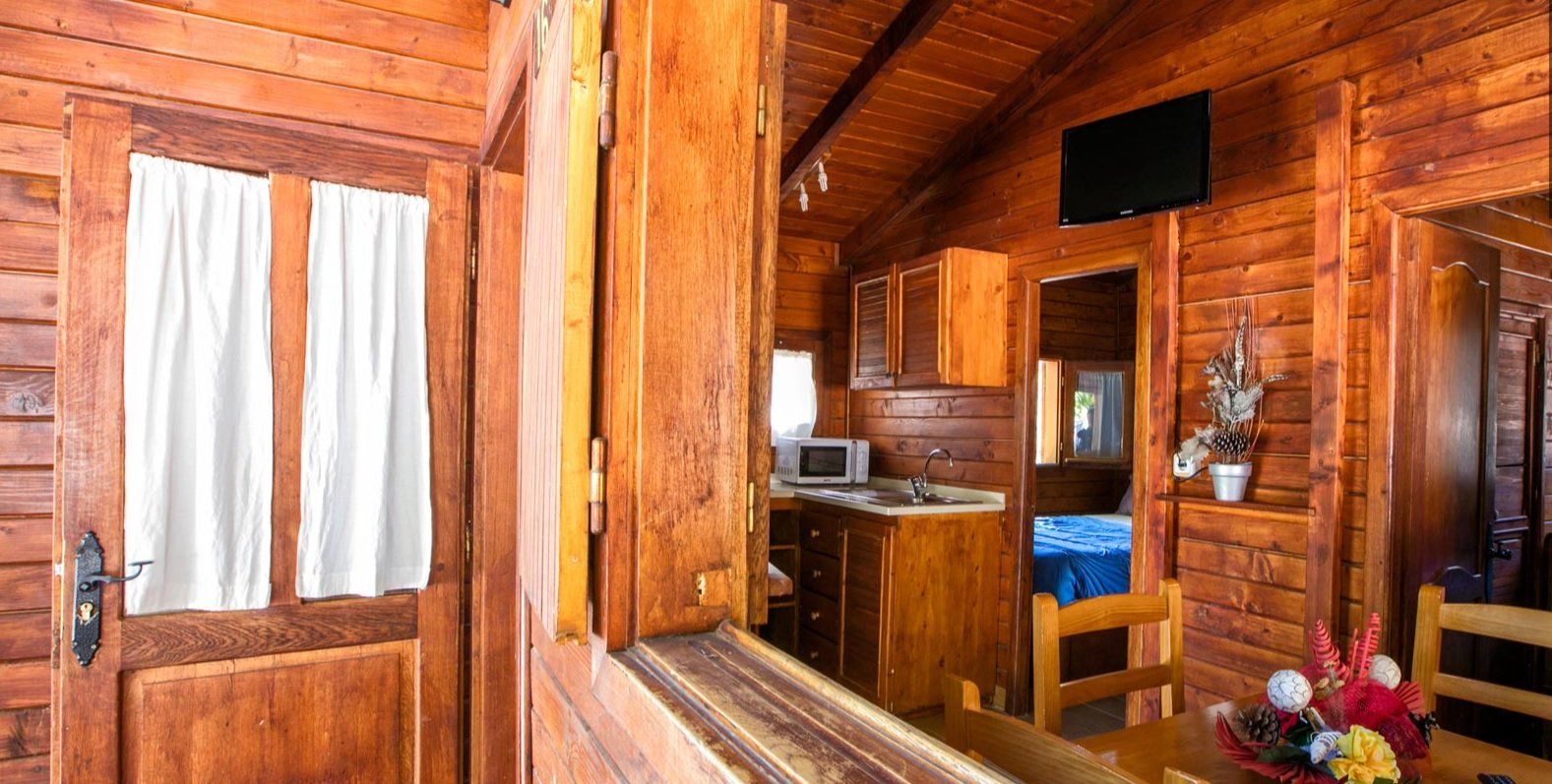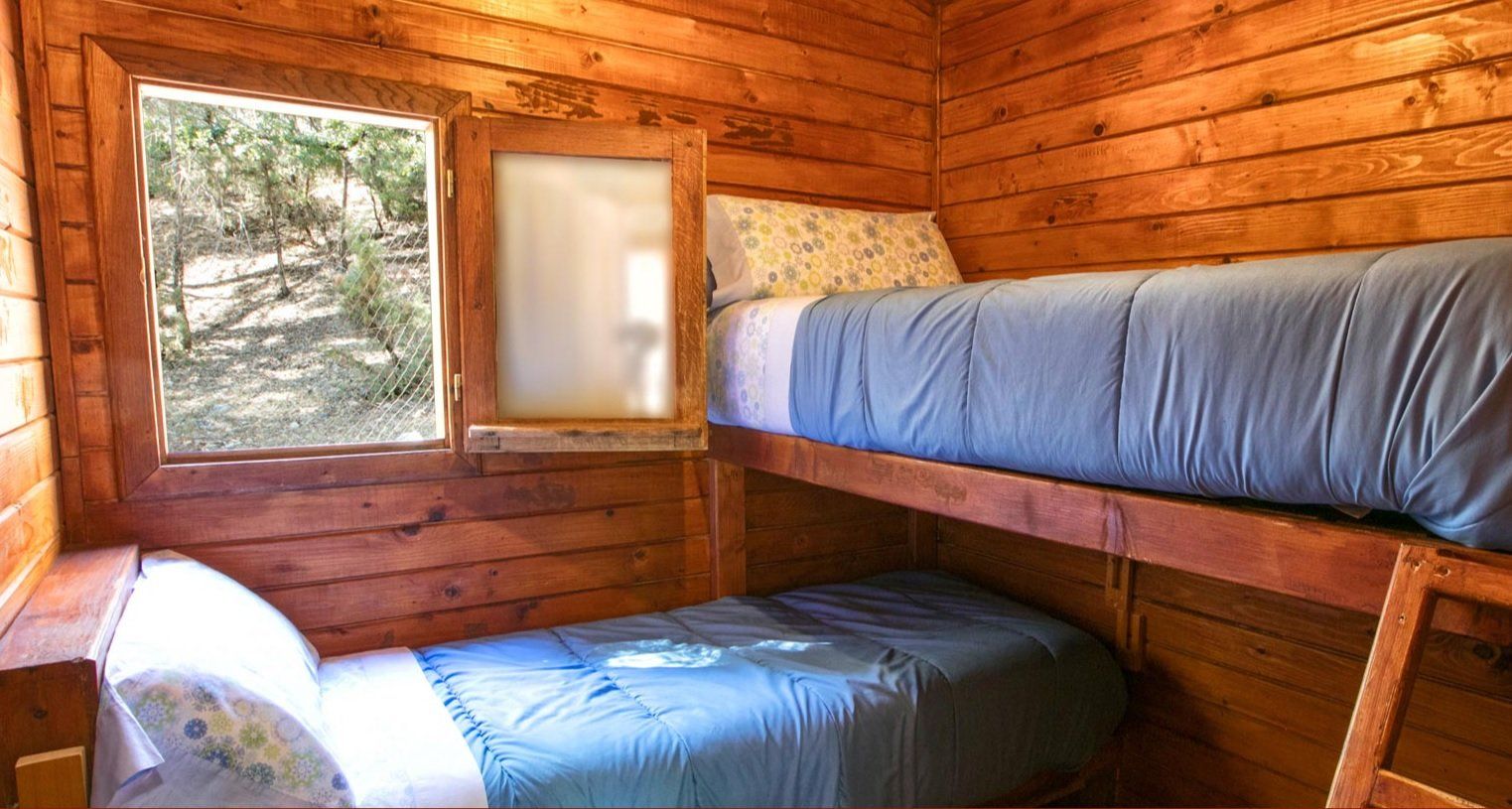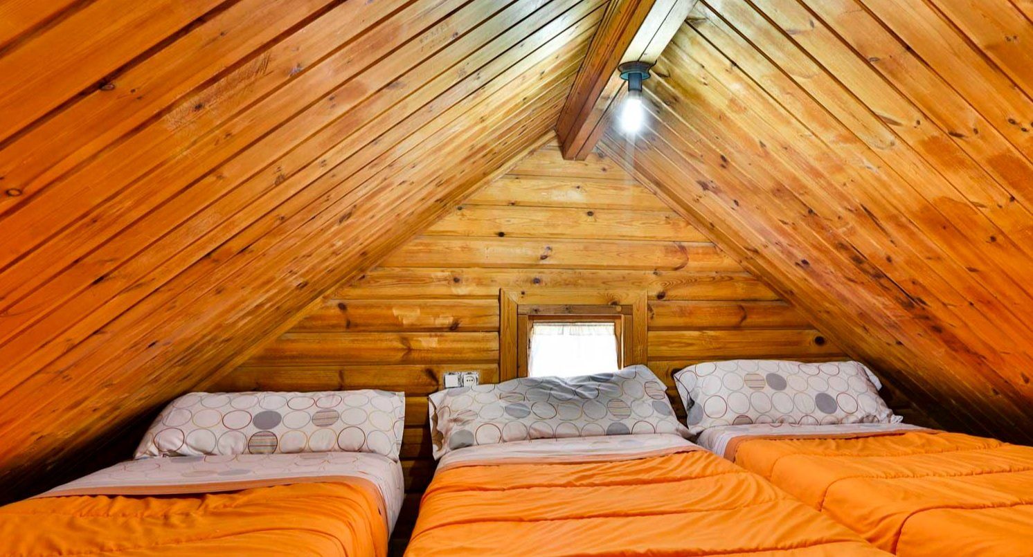 Cabins with 1 bedroom loft for 3 people, kitchen with living room, bathroom, air conditioning and heating.