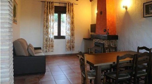 The fully equipped houses are distributed in two spacious rooms, one with a double bed and the other with two single beds, a living-dining room with a fireplace, a shower room, a bathroom, a kitchen and a front porch.The fantastic saltwater pool is located in the lower part of the farm, as well as the Children's Park. Thinking of the children, so that they can be in contact and participate in the daily care and feeding tasks, we have animals like our little donkey "Gitana" with her little baby "Platero", a couple of little wine-producing dogs (mother and daughter), "Alegría" and "Perla", chickens, piglets ... In the same farm, there is also an inn, where you can taste grilled Iberian meats, vegetables from the orchards Serranas and exquisite desserts. Localities such as Aracena, Alajar, Fuenteheridos or Linares de la Sierra, are located a few km from the farm.