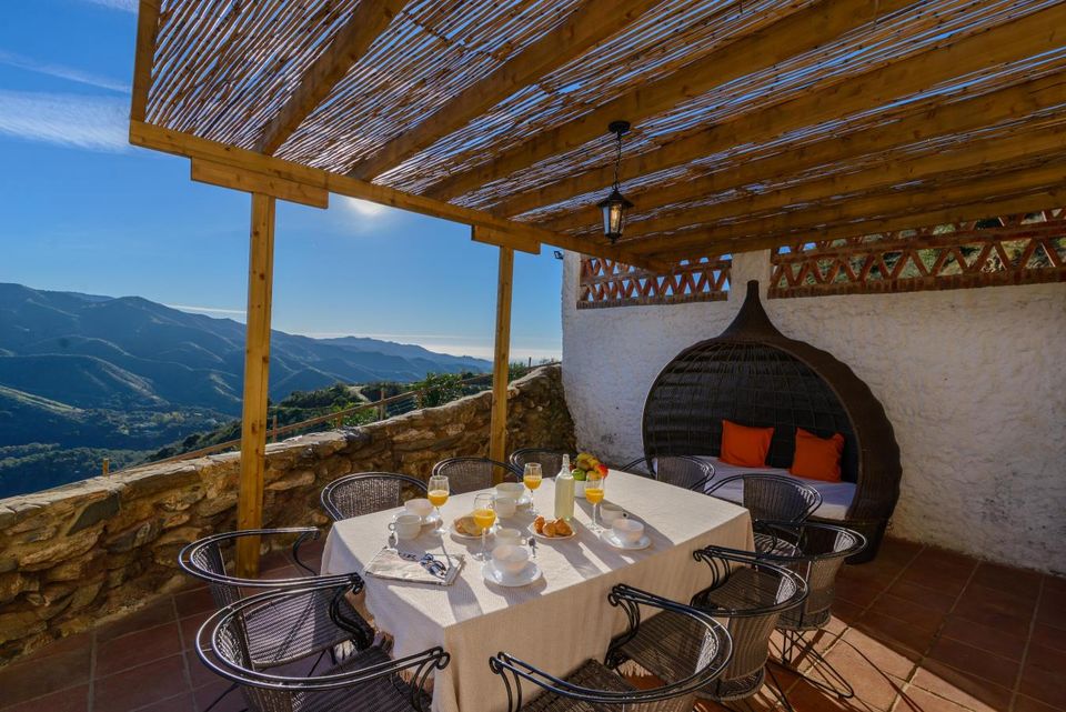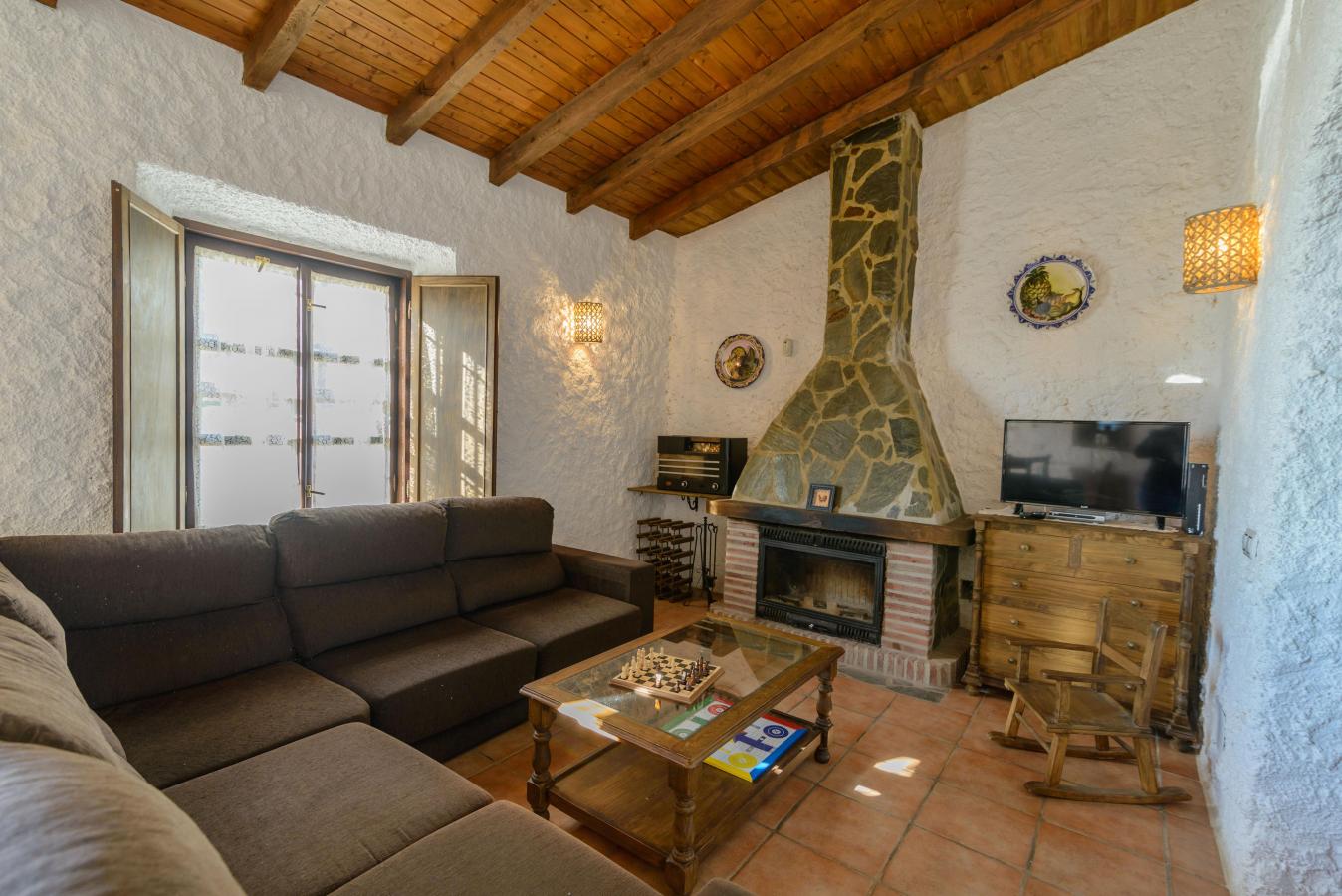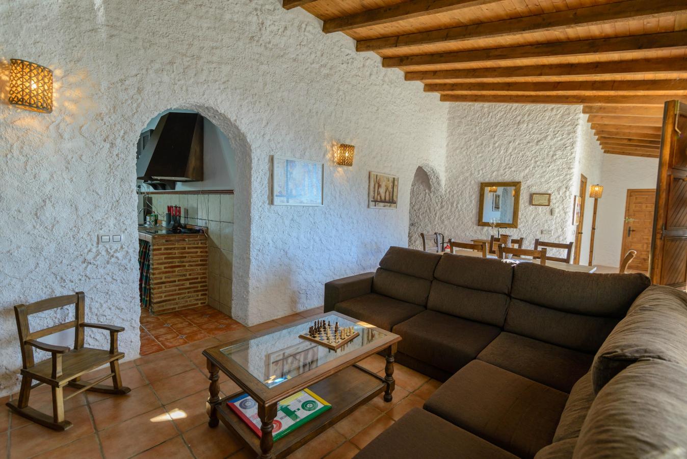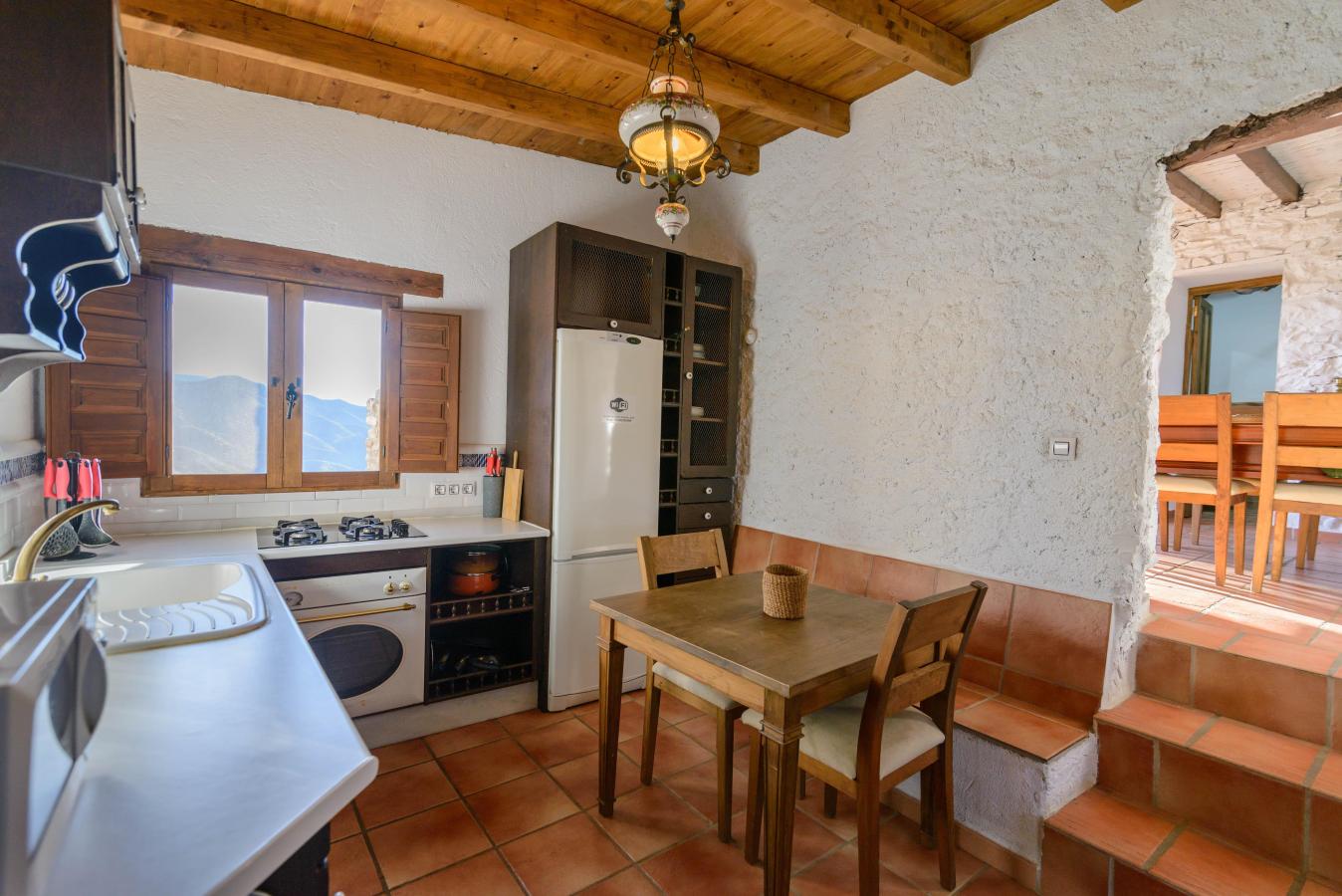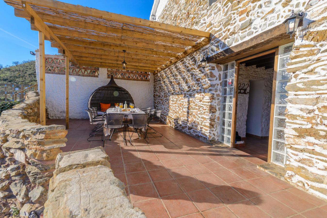 This house is configured by joining two houses, we would put in the living room of one of them all the sofas and in the other room the 2 dining tables. In this way, everyone has room to sit at the table and on the sofa.