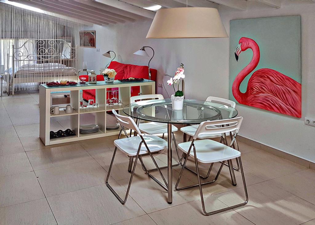 Uno de ellos de 50 m2, un espacio abierto, con decoración funcional, cálida y con estilo, que consta de cama de matrimonio, sofá con mesa, mesa alta con sillas, cocina y cuarto de baño abierto con bañera para dos personas.