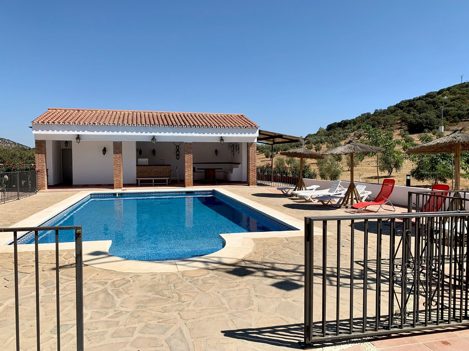 Las amplias zonas comunes interiores y exteriores están pensadas y preparadas para disfrutar de grandes reuniones. Cuenta con piscina vallada para la tranquilidad de los huéspedes que se alojen con niños, junto a una gran zona de barbacoa con paellera portátil. Además, cuenta con un baño exterior completo que evita tener que entrar a la casa cuando se está en la piscina o comiendo fuera.