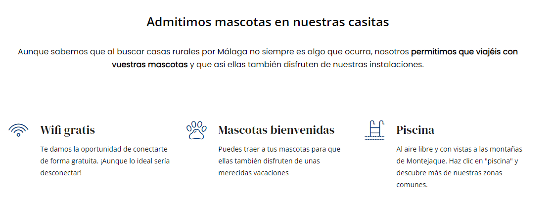 Disfrutar alojándose en casas rurales en Málaga es una experiencia que cada vez más personas demandan. Nuestros alojamientos en la fantástica zona de Montejaque disponen de todo lo necesario para que las vacaciones sean de ensueño. Unas instalaciones perfectas supervisadas por los mayores profesionales del sector y unos servicios que no dejan ningún detalle al azar llevan a que sepamos que nuestros clientes disfrutarán de las mejores vacaciones gracias a la calidad de nuestras casas.