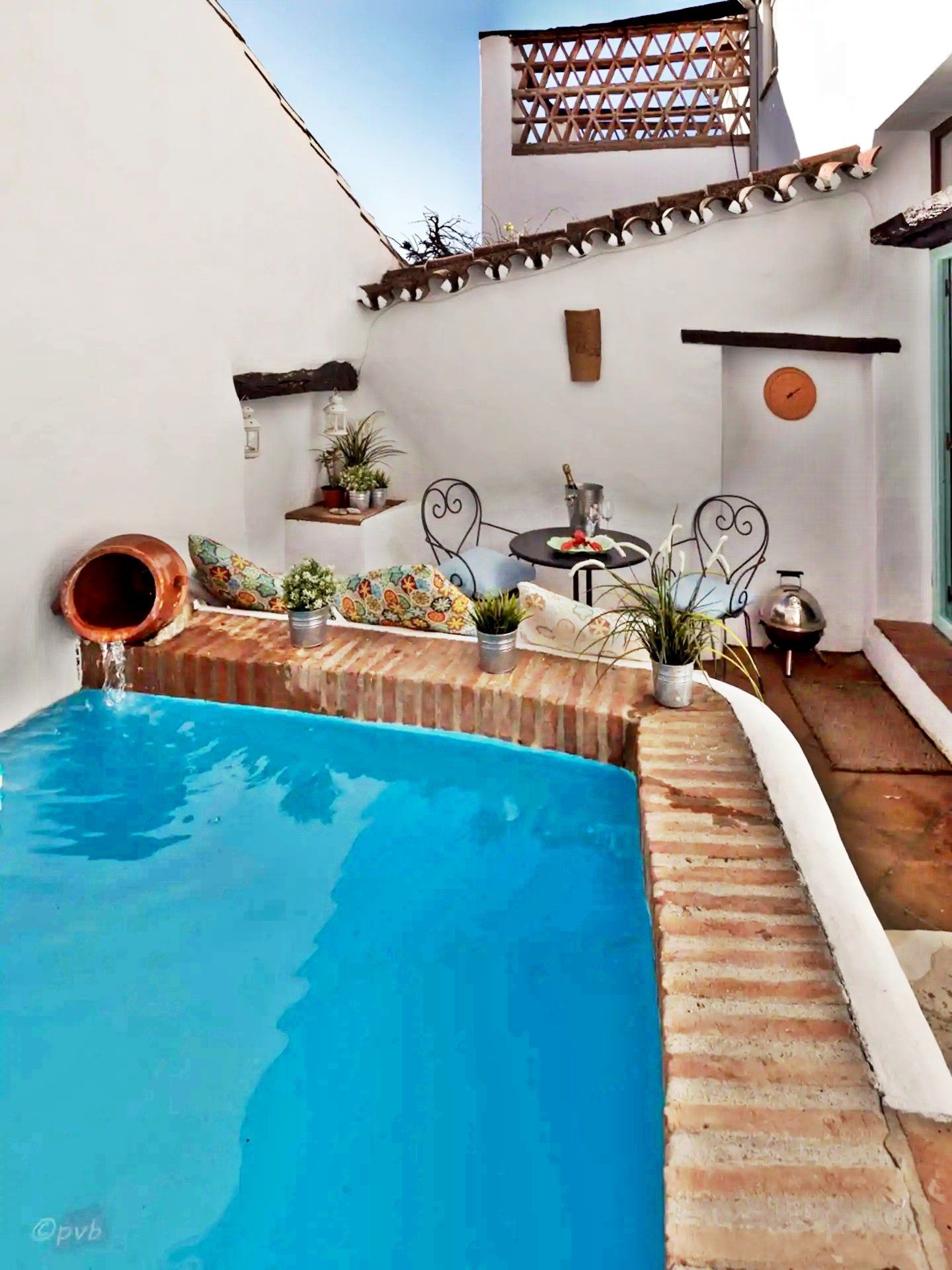 A casa é muito arejada e fica fresca nos meses de verão com suas paredes grossas muito velhas e se estiver muito calor para você um mergulho na piscina com um copo de Cava sempre resolve.