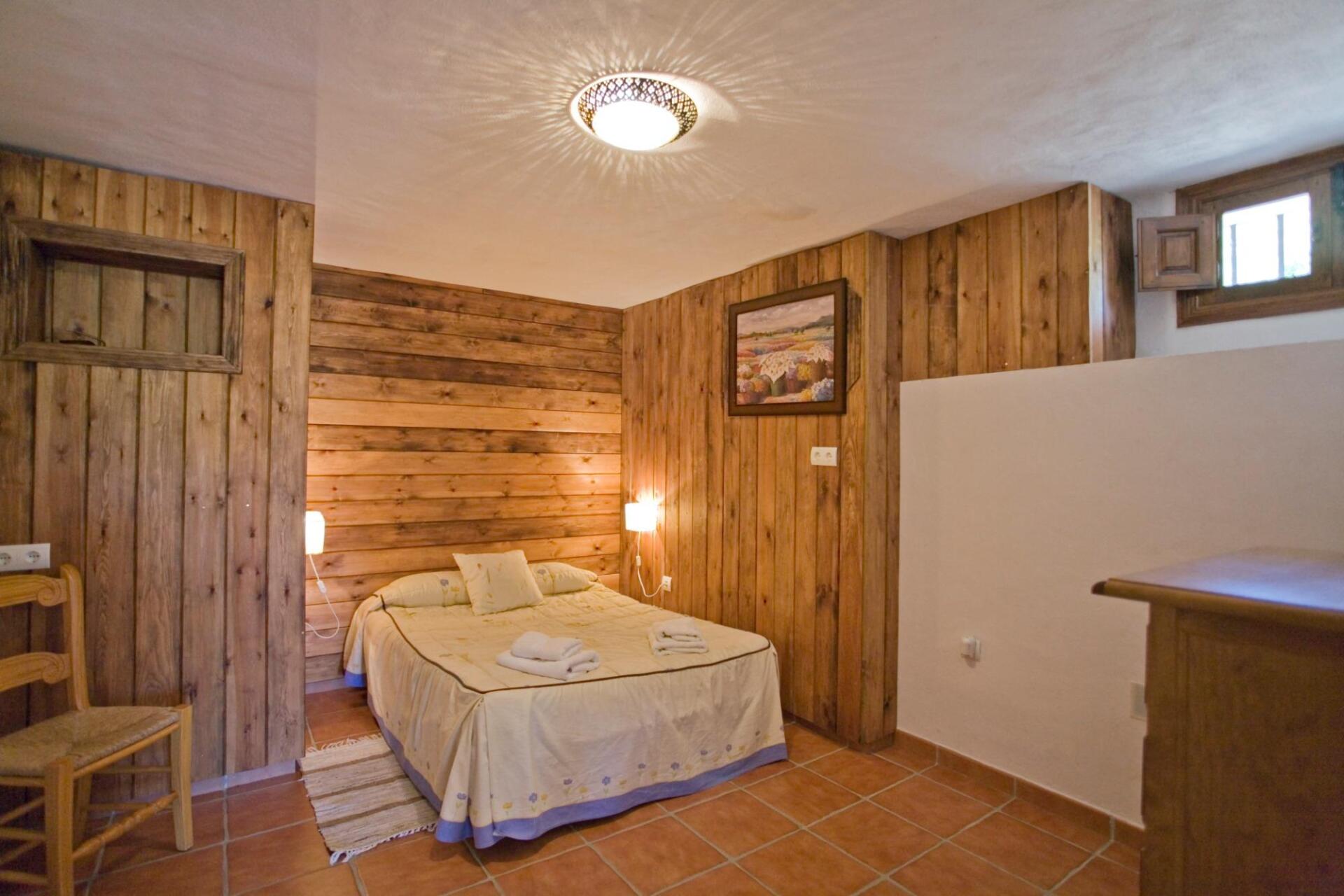 - Uma sala de jantar totalmente equipada, na qual de um lado está a mesa de madeira com seu conjunto de cadeiras. A mesa é decorada com uma peça central floral que adiciona um toque alegre a este ambiente. A seguir, um conjunto de poltronas estofadas com pormenores em madeira que lhe permitirão desfrutar das boas temperaturas proporcionadas pela lareira do centro. A televisão plasma também está presente nesta sala, uma cozinha completa com todos os equipamentos que necessita para obter as suas melhores receitas e lamber os dedos. Os electrodomésticos estão presentes, os utensílios de cozinha, as louças e os utensílios também estão presentes, pelo que só faltam 2 casas de banho completas e bastante espaçosas. Conjuntos de toalhas também estão neste espaço, 4 quartos duplos que se dividem igualmente entre aqueles com cama de casal e aqueles com 2 camas de solteiro. Em todas elas, a madeira é o elemento essencial para decorar o espaço que, junto com a roupa de cama, compõe um ótimo ambiente.