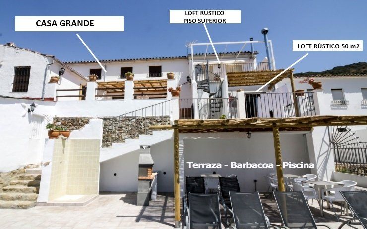 Características: Terraço privativo em cada casa, piscina esmeralda, terraço com churrasqueira, lareira, wi-fi grátis, TV LED, biblioteca, cozinha completa e vista direta para o Parque Natural Sierra de Grazalema.