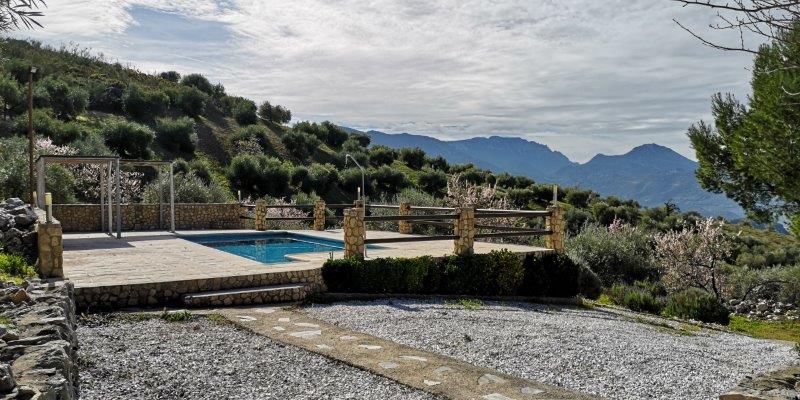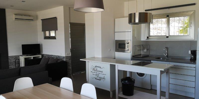 Possui sala de estar, sala de jantar, cozinha integrada, dois banheiros e três quartos. A piscina tem vista para o reservatório de Zahara.
