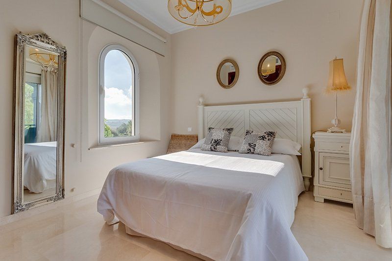 La villa de 4 dormitorios y 4 cuartos de baños se distribuye en dos plantas, amplio salón-comedor y luminosos espacios interiores con acceso a generosas terrazas exteriores con vistas del legendario pueblo de Arcos de la Frontera.